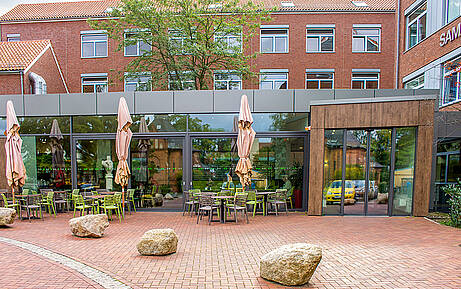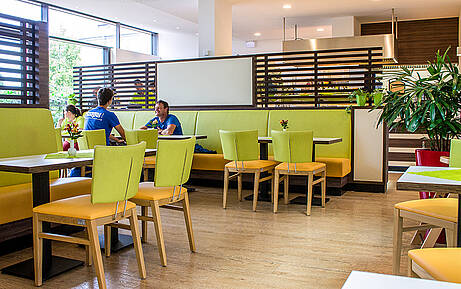 In der Cafeteria im Foyer des Klinikums erwartet Sie ein vielfältiges Angebot: Neben Speisen und Getränken erhalten Sie hier auch diverse Kioskartikel.